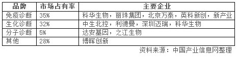 國內(nèi)IVD細(xì)分市場份額和主要龍頭企業(yè)
